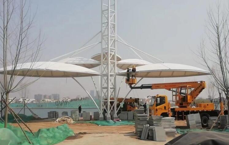 1.  結(jié)構(gòu)輕:膜結(jié)構(gòu)自重小的原因在于它依靠材料預應力張拉來保持結(jié)構(gòu)的穩(wěn)定性。結(jié)構(gòu)師可以根據(jù)這一特點實現(xiàn)大跨度無立柱造型,增加使用空間。