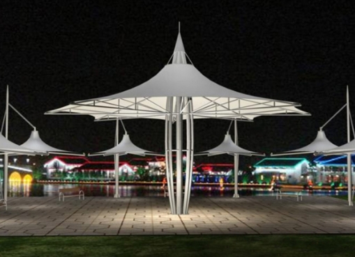 膜材的透光性使其成為夜景照明的理想載體。通過內置燈光設計,膜結構可以在夜晚營造出流光溢彩的效果,進一步提升商業廣場的吸引力。