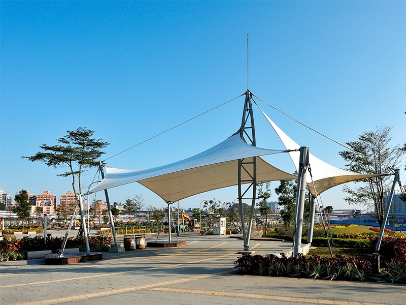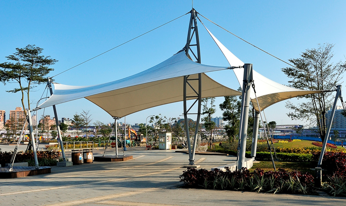 膜結(jié)構(gòu)景觀棚輕巧、別致的造型在停車場及候車廳的建設(shè)中起到重要作用,除了滿足防風(fēng)雨、防日曬等基本功能外,并有較好的標(biāo)識招攬效果,展現(xiàn)了人們個性化的一面。如果你想有陰影覆蓋或擴(kuò)大你的建筑特征,在短時間內(nèi)改變,除了木頭,石頭,金屬和玻璃材料的使用,另一種合適的材料是膜結(jié)構(gòu)景觀棚)。用PVC和PTFE膜,因此他們可以以低成本設(shè)計場館的屋頂結(jié)構(gòu)所需的形狀,這些材料可以被成功地用于幾乎所有的景觀或建筑環(huán)境,而且不受任何天氣條件的影響。膜結(jié)構(gòu)景觀棚的其他優(yōu)點(diǎn)是制造和安裝時間短,便宜的價格,高,拉伸和橫向的優(yōu)勢。