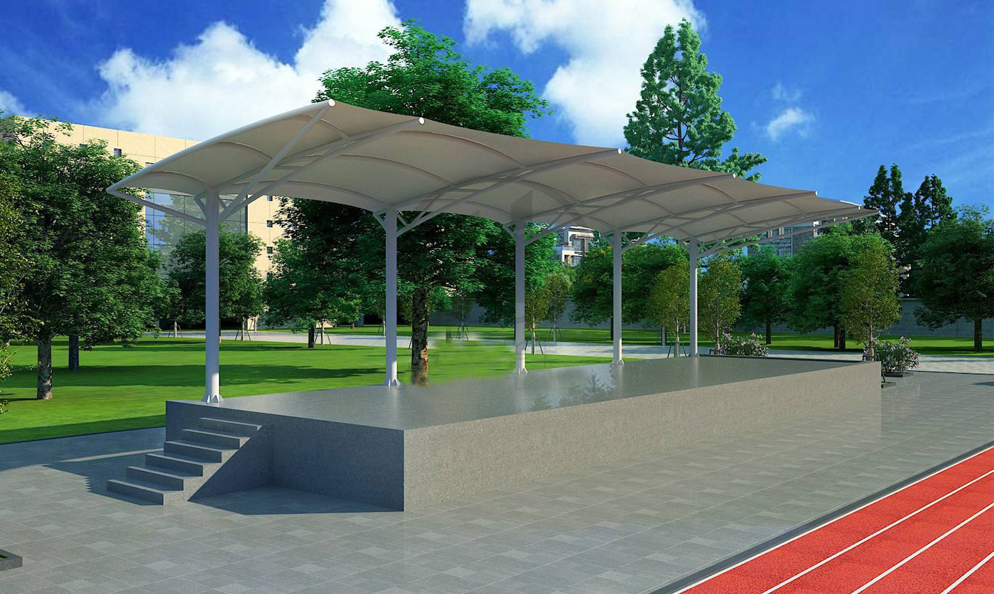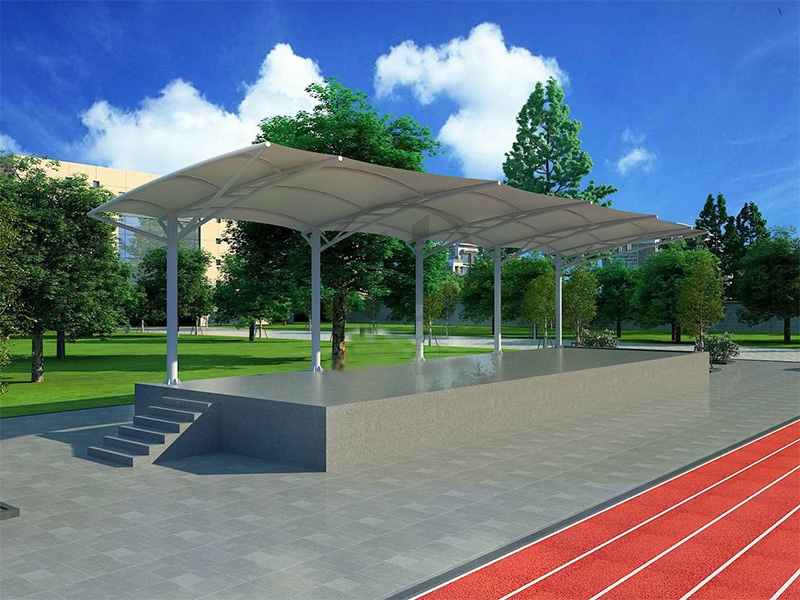 2、體育膜結構看臺的外觀設計一向都是露天的,所以在設計的時候我們需要注意它的承重力,因為一般都是單側建造或者環繞建造,必須有無數個支撐點才能讓整個頂子具有強抗風、抗震的功能 體育場看臺一般都是高大上的感覺,外觀別具特色,實用性也不錯。同時這種看臺在夏季比賽的時候,觀眾特別希望可以坐在遮陽效果好的一面,那么我們就需要把這些因素考慮進去。盡量讓設計大面積的有遮陽效果,最后在膜結構裁剪的時候要量好尺寸,這樣每塊材料才能很好的焊接成功。做到這些,一個完美又實用的體育場看臺就會很快展現在眼前了。