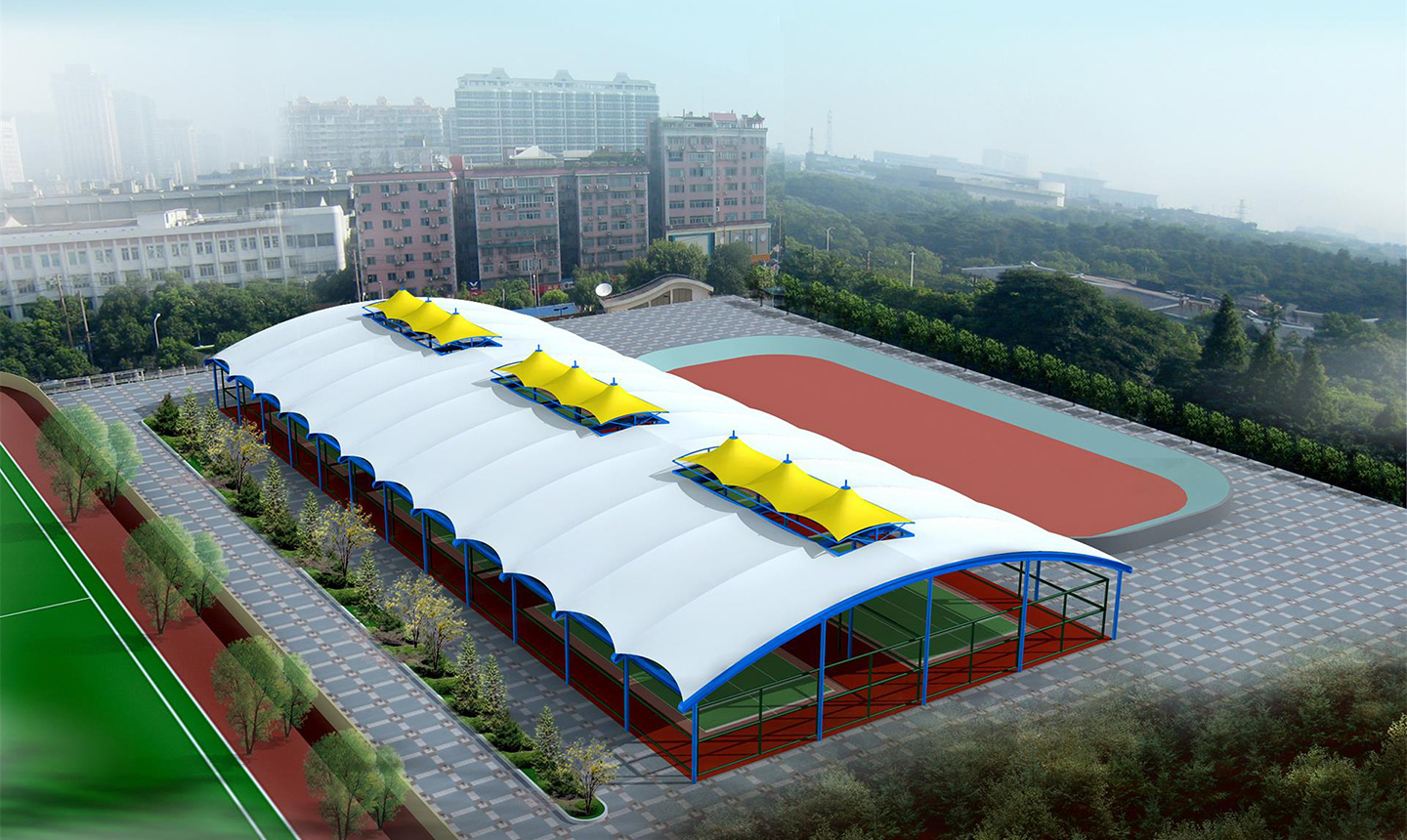 一、對于場地要求低,基本上所有球場地都可以做膜結(jié)構(gòu)頂棚,相比混凝土結(jié)構(gòu)的風雨球館,施工周期短,造價低。