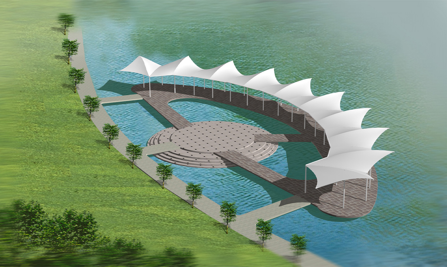 對(duì)于膜結(jié)構(gòu)建筑來(lái)說(shuō),首先要發(fā)揮抵御各種天氣現(xiàn)象的作用,比如說(shuō)自然現(xiàn)象的日曬雨淋等會(huì)對(duì)建筑結(jié)構(gòu)有的內(nèi)部空間造成的影響,還要保持建筑物內(nèi)部人們生活環(huán)境的舒適度。在使用這樣的材料建筑的時(shí)候,我們要考慮好選擇什么樣的材料來(lái)應(yīng)對(duì)當(dāng)?shù)剌^普遍的天氣的狀況。對(duì)于室內(nèi)的透光性以及很好的通風(fēng)的效果,也是張拉膜景觀設(shè)計(jì)的較為突出要在意的一點(diǎn)。