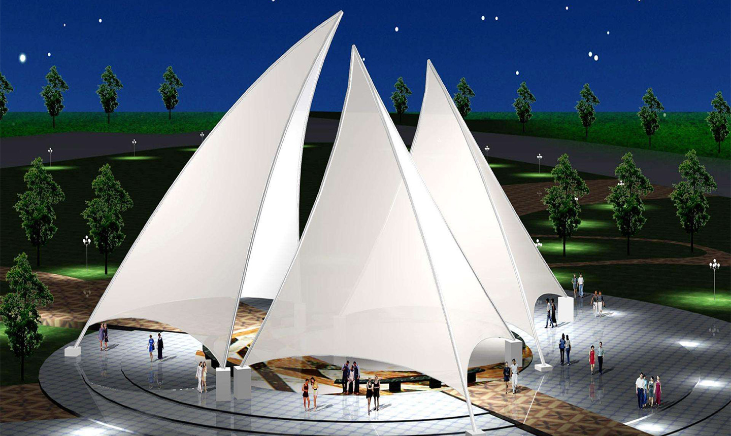 1、景觀(guān)膜結(jié)構(gòu)以造型學(xué),色彩為依托,可結(jié)合自然條件及民族風(fēng)情,享受大自然般浪漫空間;